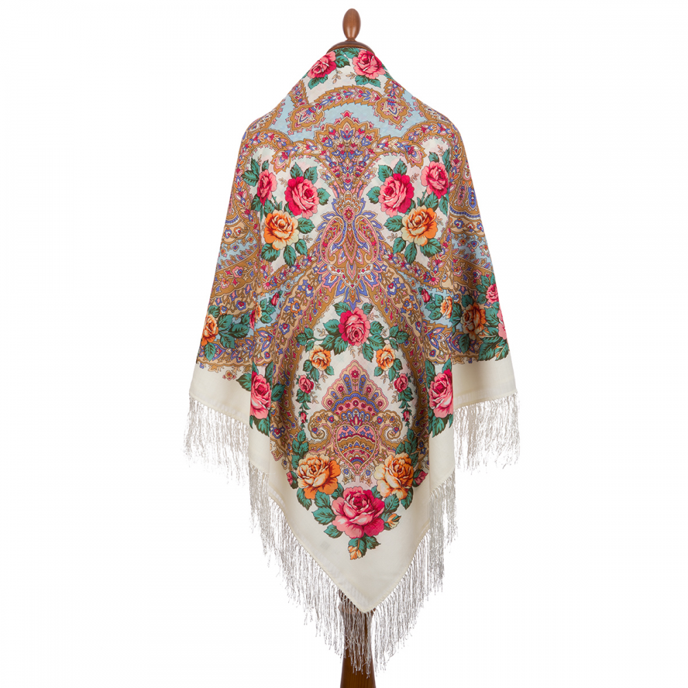 大きく咲いたピンクの薔薇が美しい146cm角の大判ウールストール